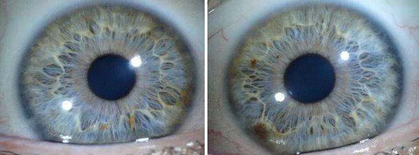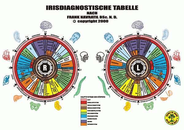 A ÍRIS é a parte colorida dos olhos, formada por camadas de fibras e pigmentos, relacionadas diretamente com o sistema nervoso central e vegetativo. Alterações na distribuição das fibras ou manchas na pigmentação podem significar órgãos deficientes, alterações metabólicas, acúmulo de toxinas em determinado órgão que podem vir a provocar distúrbios ou desequilíbrios de caráter físico, emocional e comportamental. Não se trata de um diagnóstico e sim de uma forma de determinar as deficiências orgânicas e possíveis distúrbios que podemos já estar desenvolvendo ou enfrentar no futuro.